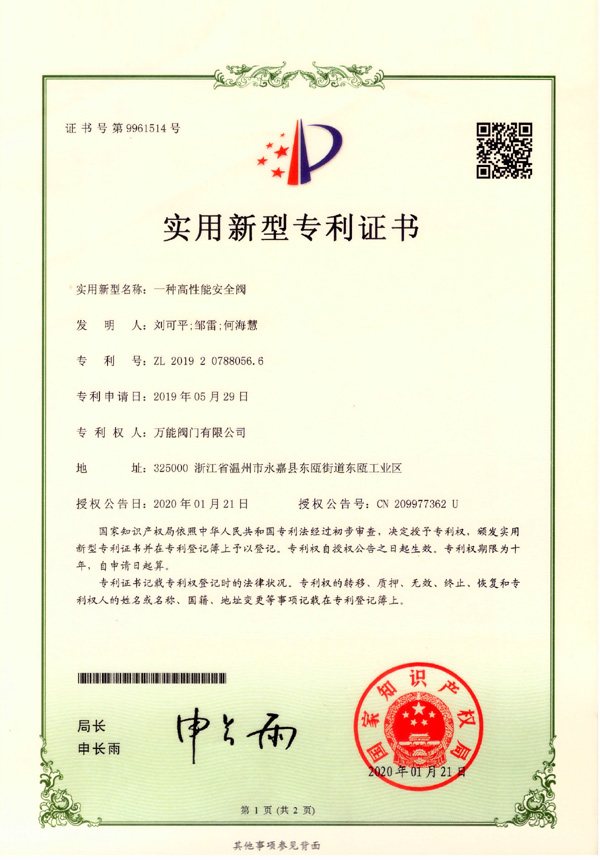 上一篇: 一種高溫安全閥門隔熱裝置實用新型專利證書